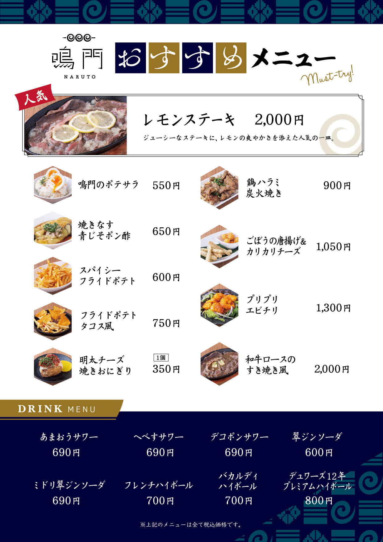 ※メニューは全て税込価格です。